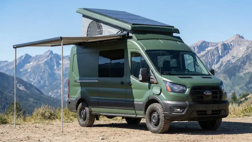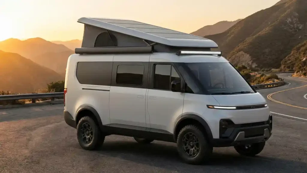- Key Feature: Pop-up roof with integrated solar panels for expanded space and power.